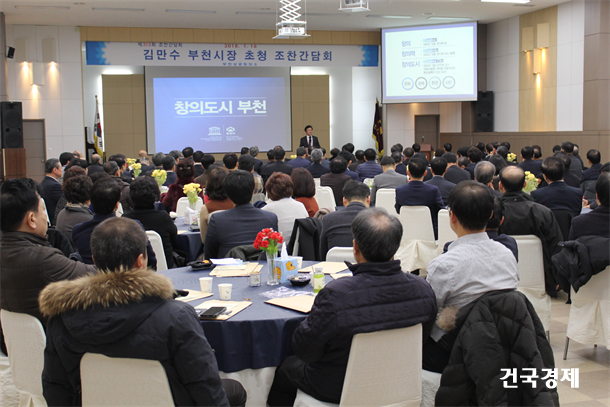 ·ùÀ籸 °æ±âµµÀÇ¿ø, ±è¿µÇù °æ±âµµÀÇ¿ø, ¼Áø¿õ °æ±âµµÀÇ¿ø, ÇѼ±Àç ºÎõ½ÃÀÇ¿ø, ±èµ¿Èñ ºÎõ½ÃÀÇ¿ø, Á¶¿µ¼÷ ºÎõ±³À°Áö¿øÃ» ±³À°Àå, ±è½Â·æ ºÎõ¼Ò¹æ¼ ¼Àå, ¹ÚÁ¾Çö Çѱ¹³ëÃÑ ºÎõÁöºÎ ÀÇÀå, °º´°ï ºÎõ»ó°øÈ¸ÀÇ¼Ò ºÎȸÀå µîÀ» ºñ·ÔÇÑ ±â°ü´ÜüÀå°ú ȸ¿ø¾÷ü ´ëÇ¥ ¹× ÀÓÁ÷¿ø 150¿©¸íÀÌ Âü¼®ÇÑ °¡¿îµ¥ ¿¸° À̳¯ °£´ãȸ¿¡¼´Â ºÎõ½ÃÀÇ ¹ßÀüÀ» À§ÇØ ÀÇ¿åÀûÀ¸·Î ´Ù¾çÇÑ ½ÃÃ¥À» ÃßÁøÇØ ¿À°í ÀÖ´Â ±è¸¸¼ö ºÎõ½ÃÀåÀ» ÃÊûÇÏ¿© ¡°2018³â ºÎõ½ÃÁ¤ ¼³¸í¡±À» ÁÖÁ¦·Î Ư°ÀÌ ÀÖ¾ú´Ù.