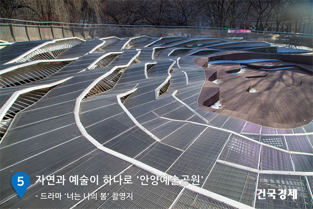 ¡®Anyang Peak¡¯´Â ÀÛǰÀÌ Àü¸Á´ë ¿ªÇÒÀ» ÇÏ´Â °÷ÀÌ´Ù. Á¶±Ý¾¿ »ß¶Ô¾îÁø ³ª¼±Çü Åë·Î¸¦ ¸ðµÎ ¿À¸£¸é »ï¼º»ê ±â½¾°ú ¾È¾ç¿¹¼ú°ø¿ø Àüü ¸ð½ÀÀ» °¨»óÇÒ ¼ö ÀÖ´Ù. ¡®³ª¹« À§ÀÇ ¼±À¸·Î µÈ Áý¡¯Àº ¾È¾ç¿¹¼ú°ø¿ø ³¡ÀÚ¶ô¿¡ ÀÚ¸® Àâ°í ÀÖ´Ù. À¯¼±Çü ¾ß¿Ü °ø¿¬Àå°ú ¿¬°á Åë·Î ¿ªÇÒÀ» ÇÏ´Â Æ©ºê ÇüÅÂÀÇ À°±³´Â ¡®ÀÎÁõ¼¦¡¯ Àå¼Ò·Îµµ À¯¸íÇÏ´Ù. 2024³â 11¿ù Æø¼³·Î À°±³ Åë·Î°¡ ÆÄ¼ÕµÇ¾î ¾Æ½¬¿òÀÌ ³²Áö¸¸ 2025³â º¸¼ö °ø»ç¸¦ ÁøÇàÇÒ ¿¹Á¤ÀÌ´Ù. ½£À» »êÃ¥ÇÏ°í °è°îÀ» µû¶ó °È´Ù º¸¸é ÀÚ¿¬½º·´°Ô ¿¹¼ú ÀÛǰ±îÁö °¨»óÇÒ ¼ö ÀÖ´Â ¾È¾ç¿¹¼ú°ø¿ø. ÀÚ¿¬À» ǰÀº °Å´ëÇÑ ¹Ì¼ú°üÀ̳ª ´Ù¸§¾ø´Ù.