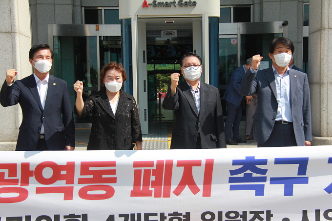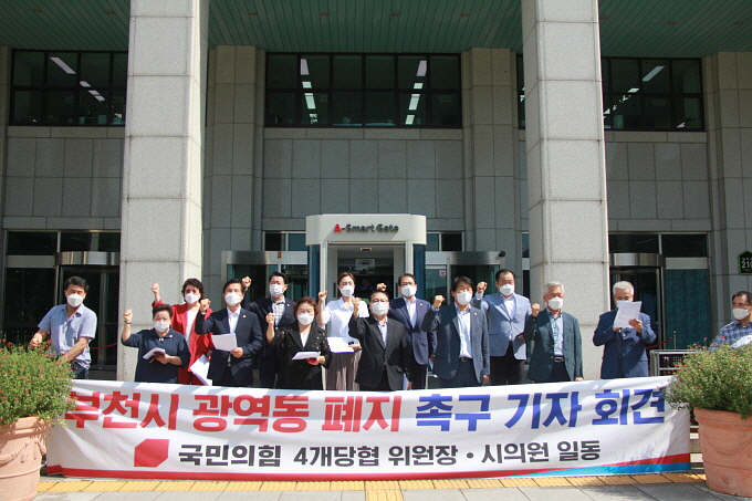 ±¹¹ÎÀÇÈû ºÎõ½Ã 4°³ ´çÇùÀ§¿øÀå(ºÎõ°© ÀÌÀ½Àç, ºÎõÀ» ¼¿µ¼®, ºÎõº´ ÃÖȯ½Ä, ºÎõÁ¤ ¼¿µ¼®)°ú 8¸íÀÇ ºÎõ½ÃÀÇ¿øµéÀº 2021³â 8¿ù 6ÀÏ ºÎõ½Ãû ¾Õ¿¡¼ ±âÀÚȸ°ßÀ» °®°í ±¤¿ªµ¿ ÆóÁö¸¦ Ã˱¸ÇÏ¸ç ¾Æ·¡¿Í °°ÀÌ "ºÎõ½Ã±¤¿ªµ¿ÆóÁö Ã˱¸ ±âÀÚȸ°ß¹®"À» ¹ßÇ¥ Çß´Ù.