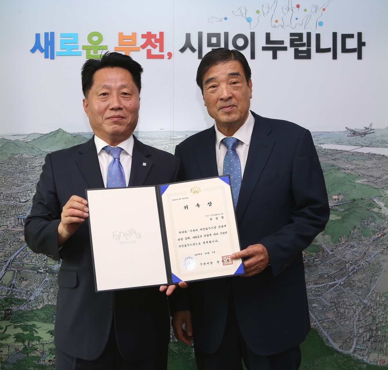 Àå´öõ ½ÃÀåÀº ¿ø¹Ì2µ¿ ÁÖ¹ÎÀÚÄ¡À§¿øÀå°ú Á¦9´ë °æ±âµµÀÇȸ ÀÇ¿øÀ» ¿ªÀÓÇÑ ±è¿µÇù(³², 68) ¾¾¿¡°Ô À§ÃËÀåÀ» ¼ö¿©Çß´Ù.