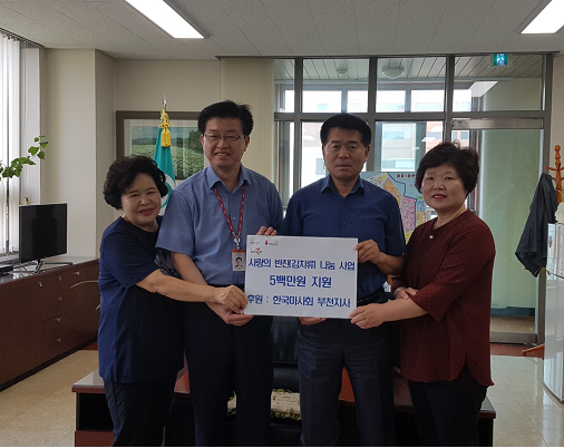 Çѱ¹¸¶»çȸ ºÎõÁö»ç(¿øÁ¾1µ¿ ¼ÒÀç)´Â ¿À´Ã 20ÀÏ °ü³» Àú¼ÒµæÃþ Ȧ¸ö ¾î¸£½Åµé¿¡°Ô °Ç°ÇÑ ¹Ø¹ÝÂù(±èÄ¡·ù)¸¦ ´ëÁ¢ÇÏ´Â Çà»ç¿¡ ÈÄ¿ø±Ý 5¹é¸¸¿øÀ» Àü´ÞÇß´Ù.