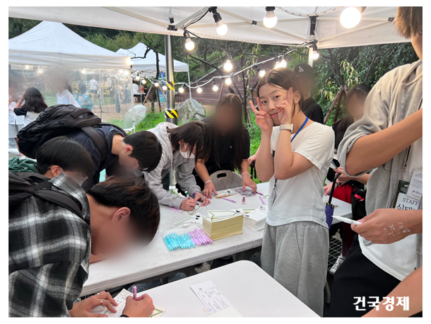 ¡à ƯÈ÷ µÎ °ø°£À» ÀÕ´Â ¡®½°ÀÇ ±æ¡¯Àº À̹ø Çà»çÀÇ Ã¶ÇÐÀ» »ó¡ÀûÀ¸·Î º¸¿©Áá´Ù. Âü¿©ÀÚµéÀº ¡®³ª¸¦ Èûµé°Ô ÇÏ´Â ²¿¸®Ç¥¡¯¶ó´Â ÁÖÁ¦ÀÇ Àü½Ã º®¿¡ ¡®ÃëÁØ»ý¡¯, ¡®Àå³à¡¯ µî »çȸ°¡ ºÎ¿©ÇÑ ÀÚ½ÅÀÇ ¿ªÇÒ°ú Æí°ßÀ» ÀûÀº ÂÊÁö¸¦ Á÷Á¢ ºÙÀÌ¸ç ¸¶À½ÀÇ ÁüÀ» ³»·Á³õ´Â ½Ã°£À» °¡Á³´Ù. ¼³¹®Á¶»ç¿¡¼µµ ´Ù¼öÀÇ Âü¿©ÀÚ°¡ ¡°²¿¸®Ç¥ ¶¼±â Ȱµ¿ÀÌ Àλó ±í¾ú´Ù. »çȸ°¡ ºÙÀÎ À̸§µéÀ» Àá½Ã ÀØ°í ±×³É ³ª ÀÚ½ÅÀ¸·Î ÀÖÀ» ¼ö ÀÖ¾ú´Ù¡±°í ´äÇß´Ù.