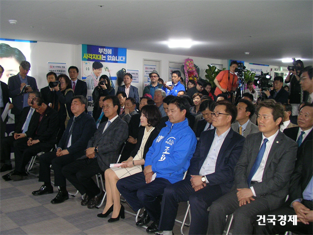 2018³â 4¿ù 25ÀÏ ¿ÀÈÄ 2½Ã, Á¶¿ëÀÍ ºÎõ½ÃÀå ¿¹ºñÈĺ¸ ¡®°¨µ¿Ä·ÇÁ¡¯¿¡¼ ¾à 2000¿©¸íÀÇ ´ç¿ø°ú ÁöÁöÀÚµéÀÌ ¸ðÀÎ °¡¿îµ¥ 6.13Áö¹æ¼±°Å ½Â¸®¸¦ À§ÇÑ ¼±°Å»ç¹«¼Ò °³¼Ò½ÄÀÌ ¿·È´Ù.