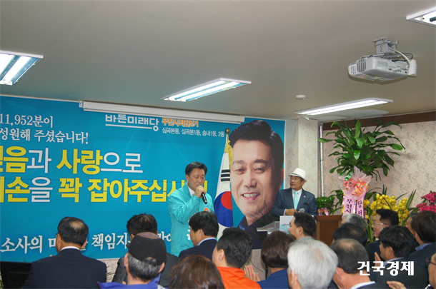 ±è¿µ±Ô ¹Ù¸¥¹Ì·¡´ç ºÎõ½ÃÀÇ¿ø(¹Ù ¼±°Å±¸) ¿¹ºñÈĺ¸ ¼±°Å»ç¹«½Ç °³¼Ò½ÄÀÌ 2018³â 4¿ù 12ÀÏ ¿ÀÈÄ 3½Ã ºÎõ½Ã ¼Ò»ç±¸ ¼Û³»µ¿ 366 ¼±°Å»ç¹«½Ç 3Ãþ¿¡¼­ "ÀÏ²Û ÇѸí Àß »ÌÀ¸¸é, ÁÖ¹ÎÀÌ ÆíÇØÁý´Ï´Ù."¶õ ½½·Î°ÇÀ» ³»¼¼¿ì¸ç ¶ß°Å¿î ¿­±â¼Ó¿¡ ±×·£µåÇÏ°Ô ¿­·È´Ù.