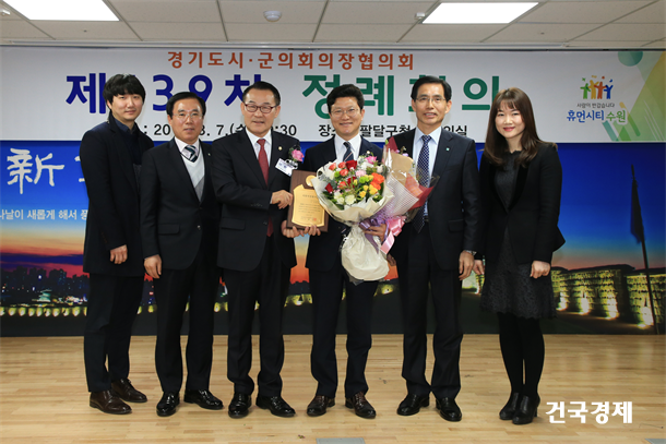 ºÎõ½ÃÀÇȸ °µ¿±¸ ÀÇÀåÀÌ 7ÀÏ ¼ö¿ø½Ã ÆÈ´Þ±¸Ã» ´ëȸÀǽǿ¡¼ ¿¸° Á¦139Â÷ °æ±âµµ½Ã±ºÀÇȸÀÇÀåÇùÀÇȸ Á¤·ÊȸÀÇ¿¡¼ Àü±¹½Ã±º±¸ÀÇȸÀÇÀåÇùÀÇȸ°¡ ¼ö¿©ÇÏ´Â 2018 Áö¹æÀÇÁ¤ºÀ»ç»óÀ» ¼ö»óÇß´Ù.