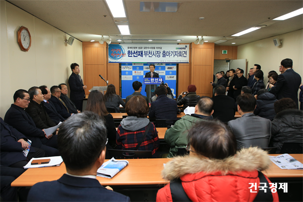 ºÎõ½ÃÀÇȸ ÇѼ±Àç ÀÇ¿øÀÌ 7ÀÏ ¿ÀÀü 11½Ã ºÎõ½Ãû ºê¸®Çη뿡¼­ ±âÀÚȸ°ßÀ» ¿­°í ºÎõ½ÃÀå Èĺ¸ Ã⸶¸¦ ¼±¾ðÇß´Ù.