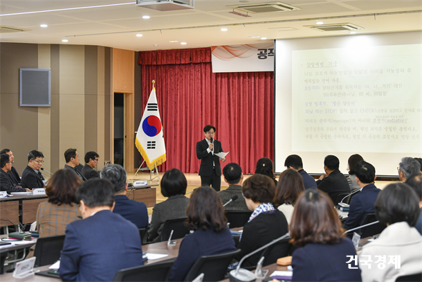 ÀÌ¾î ±èº´¼ö ½ÃÀåÀº ¡®Ã»·Å¸®´õ½ÊÀ» À§ÇÑ °£ºÎ°øÁ÷ÀÚÀÇ 5°¡Áö ½Çõ ±âÁØ¡¯À» ÁÖÁ¦·Î °£ºÎ°ø¹«¿ø û·Å±³À°À» ÁøÇàÇß´Ù. ƯÈ÷ ±×´Â ¡°³»°¡ ¹Ù·Î ¼­¸é ÈĹ赵 ¹Ù·Î ¼±´Ù¡±¸ç ¡®³ªºÎÅÍ Ã»·ÅÇÑ ÀÚ¼¼¡¯¸¦ °®Ãߴ û·Å ¸®´õ½ÊÀ» °­Á¶Çß´Ù. ÀÌ¾î ¡ã »ó´ë¹æÀ» Á¸ÁßÇÏ´Â ¸»°ú Ç¥Á¤À¸·Î ´ëÇϱ⠡㠼º ºñÀ§ ¹× À½ÁÖ¿îÀüÀÇ °¢º°ÇÑ °æ°¢½É µîÀ» ´çºÎÇß´Ù.
