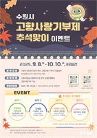 ¼ö¿ø½Ã, °íÇâ»ç¶û±âºÎÁ¦ Ãß¼®¸ÂÀÌ °¨»ç À̺¥Æ®9¿ù 8ÀϺÎÅÍ 10¿ù 10ÀϱîÁö¡¦ 10¸¸ ¿ø ÀÌ»ó ±âºÎÀÚ ´ë»ó ¼ö¿øÆäÀÌ ÁõÁ¤, Àç±âºÎÀÚ Æ¯º° ÇýÅà ¼ö¿ø½Ã(½ÃÀå ÀÌ...