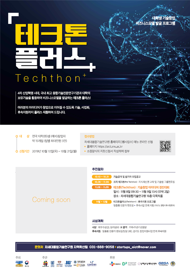°æ±âµµ¿Í Â÷¼¼´ëÀ¶ÇÕ±â¼ú¿¬±¸¿øÀº ´ëÇÐ(¿ø)»ý ±â¼úâ¾÷ ºñÁî´Ï½º¸ðµ¨ ¹ß±¼ ÇÁ·Î±×·¥ ¡®2019 Å×ũſÇ÷¯½º¡¯À» ÃßÁø, Âü°¡ÀÚ¸¦ ¿À´Â 21ÀϱîÁö ¸ðÁýÇÑ´Ù.