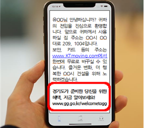 ÀÌ·± °¡¿îµ¥ µµ´Â °¢ ½Ã±º¿¡¼­ ÀüÀÔÀÚ ´ë»ó ¹®Àھȳ» ¼­ºñ½º°¡ ÀÖ´Ù´Â »ç½ÇÀ» È®ÀÎÇß´Ù. °¢ ½Ã±º¿¡¼­´Â Áֹμ¾ÅÍ¿¡ ÀüÀÔ½Å°í¸¦ ÇÏ´Â µµ¹ÎÀÌ µ¿ÀÇÇÒ °æ¿ì KTÀÇ Áö¿øÀ» ¹Þ¾Æ ÀüÀÔÁö µµ·Î¸í ÁÖ¼Ò¸¦ ¹®ÀÚ¸Þ½ÃÁö·Î ¾Ë·ÁÁØ´Ù. °æ±âµµ´Â ÀÌ ¹®ÀÚ ¼­ºñ½º¿¡ °æ±âµµ ȨÆäÀÌÁö º¹ÁöÇýÅà ¾È³»¼­ºñ½º ÁÖ¼Ò(https://www.gg.go.kr/welcometogg)¸¦ Æ÷ÇÔÇØ ´Þ¶ó°í ÇùÁ¶¸¦ ±¸Çß´Ù. ¹®ÀÚ¼­ºñ½º¸¦ Á¦°øÇÏÁö ¾Ê´Â ³²¾çÁÖ¿Í ¾È»ê½Ã¸¦ Á¦¿ÜÇÑ µµ³» 29°³ ½Ã‧±ºÀÌ ¿©±â¿¡ µ¿ÀÇÇß°í Áö³­ 6¿ùºÎÅÍ º°µµ Ãß°¡ ºñ¿ë¾øÀÌ ¾È³»¹®ÀÚ°¡ ¹ß¼ÛµÇ°í ÀÖ´Ù.