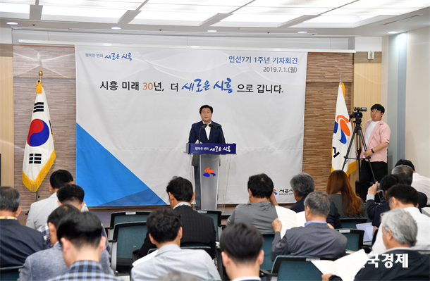 ÀÓº´Åà ½ÃÈï½ÃÀåÀÌ 1ÀÏ ¿ÀÀü 11½Ã ½ÃÈï½Ãû ±Û·Î¹ú¼¾ÅÍ¿¡¼ ¹Î¼±7±â Ãâ¹ü 1Áֳ⠱âÀÚȸ°ßÀ» ¿°í ¡°*52¸¸ ´ëµµ½ÃÀÇ ¹®À» ¿¬ ½ÃÈï½ÃÀÇ ¹ßÀüÀº ¸ðµÎ ½Ã¹Î ´öºÐ¡±À̶ó¸ç ¡°¹Ì·¡ ½ÃÈï 30³âÀÇ ÁÖÃåµ¹À» ³õ±â À§ÇØ ÃÖ¼±À» ´ÙÇϰڴ١±°í ¹àÇû´Ù.