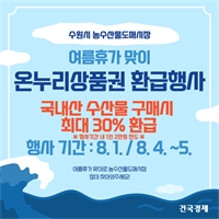 ¼ö¿ø½Ã³ó¼ö»ê¹°µµ¸Å½ÃÀå, ¿©¸§ÈÞ°¡Ã¶ ¸Â¾Æ ¿Â´©¸®»óǰ±Ç ȯ±ÞÇà»ç8¿ù 1ÀÏ, 4~5ÀÏ ¼ö»êµ¿¿¡¼­ ±¹³»»ê ¼ö»ê¹° »ç¸é ÃÖ´ë 2¸¸ ¿ø ¿Â´©¸®»óǰ±ÇÀ¸·Î ȯ±Þ¼ö¿ø½Ã³ó¼ö»ê...