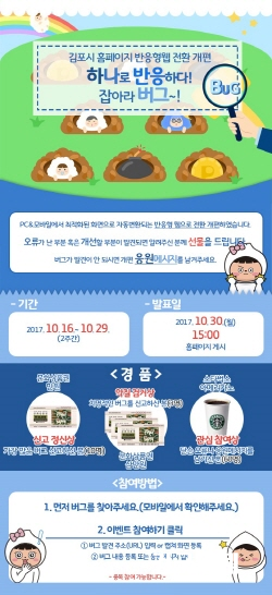 ±èÆ÷½Ã(½ÃÀå À¯¿µ·Ï)°¡ ȨÆäÀÌÁö(www.gimpo.go.kr)¸¦ PC¿Í ¸ð¹ÙÀÏ¿¡¼­ ÃÖÀûÈ­µÈ È­¸éÀ¸·Î ÀÚµ¿º¯È¯µÇ´Â ¹ÝÀÀÇü À¥À¸·ÎÀÇ Àüȯ °³ÆíÀ» ¿Ï·áÇÏ°í ¿À´Â 29ÀϱîÁö ¡®Àâ¾Æ¶ó ¹ö±×~¡° À̺¥Æ®¸¦ ÁøÇàÇÑ´Ù.