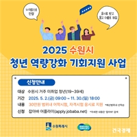 ¼ö¿ø½Ã, ¹ÌÃë¾÷ û³â ´ë»ó ¾îÇС¤ÀڰݽÃÇè ÀÀ½Ã·á ÃÖ´ë 30¸¸ ¿ø Áö¿ø¼ö¿ø½Ã, ¡®2025³â û³â ¿ª·®°­È­ ±âȸ Áö¿ø»ç¾÷¡¯ Âü¿© û³â ¸ðÁý¼ö¿ø½Ã´Â ¹ÌÃë¾÷ û³âµé...