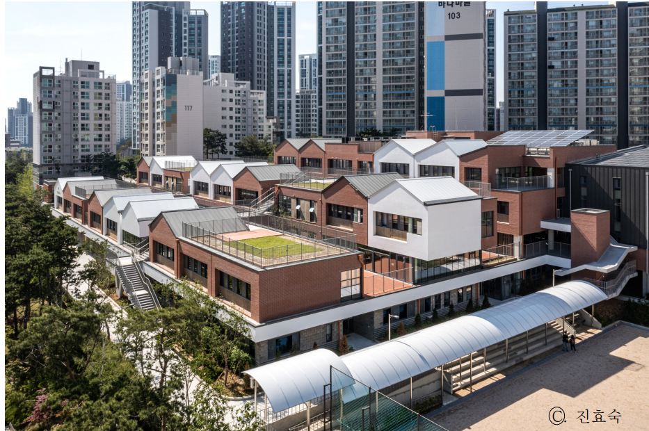 ƯÈ÷ Çб³ Àüü¸¦ ²Þ´ã±³½Ç·Î ¼³°èÇÑ ¼­¿ïÇϴý£ÃÊÀÇ °æ¿ì Çлý ¼ºÀå À¯Çü¿¡ µû¶ó 3°¡Áö À¯ÇüÀÇ ±³½ÇÀ» Á¶¼ºÇßÀ¸¸ç, °øÇ×°í´Â ½Ç³»°ø°£À» ¾ÆÆ®¸®¿ò Çü½ÄÀ¸·Î Àû¿ëÇÏ°í °è´ÜÀ¸·Î °øµ¿°ø°£À» ¿¬°áÇÏ¿© ÇлýµéÀÌ ±³·ùÇϵµ·Ï ¼³°èµÇ¾ú°í, ½Å±æÁßÀº ȹÀÏÀûÀÌ°í °Å´ëÇÑ °íÃþ¾ÆÆÄÆ® ½£¿¡¼­ ¹Ú°øÁöºØÀ» Àû¿ëÇÑ ¿Ü°ü µðÀÚÀÎÀ¸·Î Æ÷±ÙÇÑ Áý°ú °°Àº ´À³¦À» »ì·Á Çлý¿¡°Ô ´Ù¾çÇϰí âÀÇÀûÀÎ Çб³»ýȰÀÌ °¡´ÉÇϵµ·Ï Á¶¼ºµÇ¾ú´Ù.