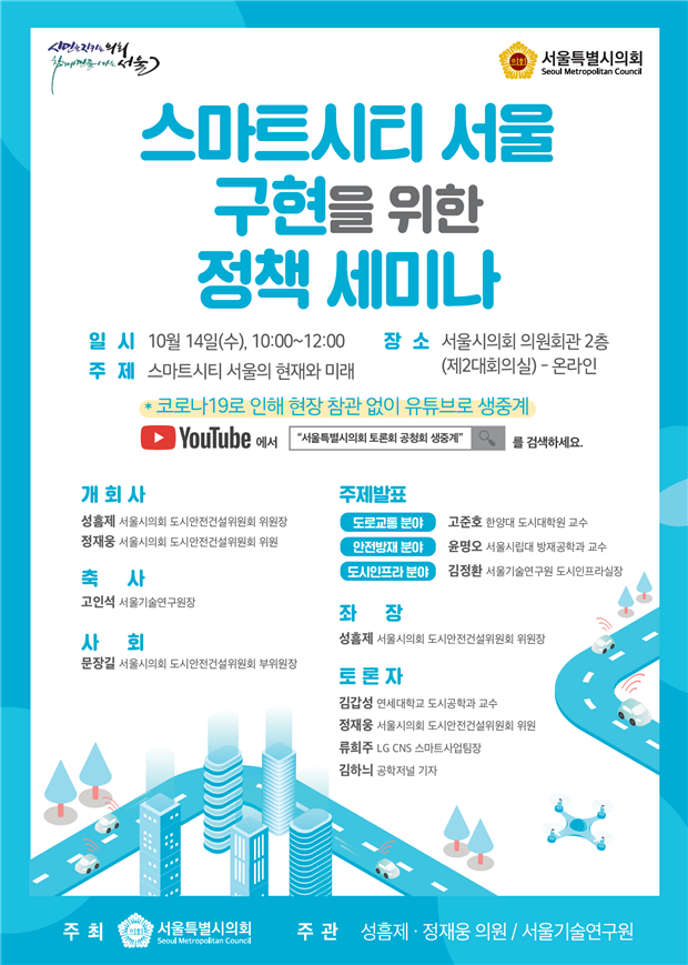 ÀÌ ³¯ ¼¼¹Ì³ª´Â ½º¸¶Æ®±â¼úÀÇ È¹±âÀûÀÎ ¹ßÀü°ú Äڷγª µî ºñ´ë¸é Ȱµ¿ÀÇ ½Ã´ëÀû ¿ä±¸¿¡ ´ëÀÀÇÏ¿© ¼¿ï½ÃÀÇ ½º¸¶Æ®½ÃƼ·ÎÀÇ ÀüȯÀ» À§ÇÑ ºÐ¾ßº° ±â¼úµ¿ÇâÀ» »ìÆìº¸°í °³¼±°úÁ¦µéÀ» µµÃâÇϱâ À§ÇÑ ÀÚ¸®·Î Äڷγª19 È®»ê ¹æÁö¸¦ À§ÇØ ¹«Ã»Áß ¿Â¶óÀÎ »ýÁß°è ¹æ½ÄÀ¸·Î ÁøÇàµÉ ¿¹Á¤ÀÌ´Ù.