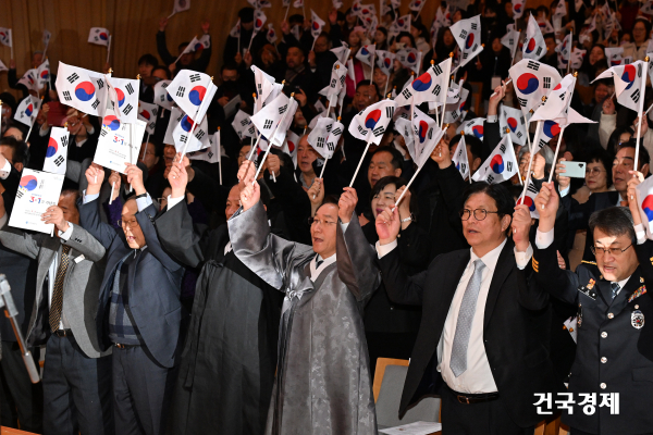 À̳¯ Çà»ç¿¡¼´Â ͺ ÀÌÁØ¸í ¾Ö±¹Áö»çÀÇ ¼Õ³àÀÎ Á¶Àº¿µ ½ÃÀÎÀÌ ÀÚÀÛ Çå½Ã <±× ±æ¿¡ ¼û°á>À» ³¶¼ÛÇϸç 3¡¤1ÀýÀÇ Àǹ̸¦ ´õ¿í ±íÀÌ »õ±â´Â ½Ã°£À» °¡Á³´Ù. ¸¸¼¼»ïâÀº Á¤ÇØ±Ç ÀÎõ½ÃÀÇȸÀÇÀå°ú µ¶¸³¿îµ¿°¡ Èļյé(ͺÀ̸é¿ì ¾Ö±¹Áö»çÀÇ ¼ÕÀÚ ÀÌ¿ë´ë, ͺ±Ç°©ºÀ ¾Ö±¹Áö»çÀÇ ¼Õ³à ±Çµ¿Èñ)ÀÌ ¼±Ã¢Çϰí, Âü¼®ÀÚµéÀÌ ÇÔ²² ¸¸¼¼¸¦ ¿ÜÄ¡¸ç µ¶¸³¿îµ¿ÀÇ Á¤½ÅÀ» ±â·È´Ù.