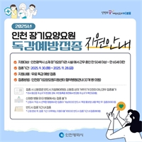ÀÎõ½Ã, Àå±â¿ä¾ç±â°ü Á¾»çÀÚ ¹«·á µ¶°¨ ¿¹¹æÁ¢Á¾ ½Ç½Ã¸¸ 50¼¼ ÀÌ»ó~65¼¼ ¹Ì¸¸ ´ë»ó, 9¿ù 30ÀϺÎÅÍ 11¿ù 28ÀϱîÁö ÁöÁ¤º´¿ø 33°÷¼­ Á¢Á¾ °¡´ÉÀÎõ±¤¿ª...