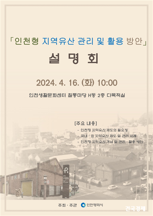 ÀÎõ±¤¿ª½Ã´Â ±ÙÇö´ë Áö¿ªÀ¯»ê¿¡ ´ëÇÑ °ü¸® ¹× Ȱ¿ë ¹æ¾È ¸¶·ÃÀ» À§ÇØ ¿À´Â 4¿ù 16ÀÏ ¿ÀÀü 10½ÃºÎÅÍ ÀÎõ»ýȰ¹®È­¼¾ÅÍ Ä¥Å븶´ç ´Ù¸ñÀû½Ç(Áß±¸ Á¦¹°·®·Î 218¹ø±æ 3)¿¡¼­ ÁÖ¹Î, °ü°èÀÚ µîÀ» ´ë»óÀ¸·Î ¼³¸íȸ¸¦ °³ÃÖÇÑ´Ù°í ¹àÇû´Ù.