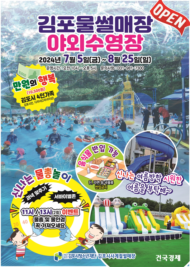 ±èÆ÷¹°½ä¸ÅÀå ¾ß¿Ü¼ö¿µÀåÀº ±ú²ýÇÑ ¼öÁú°ú ³ÐÀº ÈÞ°Ô°ø°£, ÀûÀçÀû¼Ò ¾ÈÀü¿ä¿ø ¹èÄ¡·Î ¾ÈÀüÇÑ ¹°³îÀ̽ü³·Î Á¤ÆòÀÌ ³ª ÀÖ´Ù. ¶ÇÇÑ ±èÆ÷½Ã¹Î ¹× ´ÙÀڳడÁ·Àº ÇÒÀÎÀÌ Àû¿ëµÇ¾î 4ÀÎ °¡Á·(´ÙÀÚ³à) ±âÁØ 10,500¿øÀ¸·Î ÀÌ¿ëÇÒ ¼ö ÀÖ¾î °í¹°°¡ ½Ã´ë ½Ã¹ÎµéÀÇ ÇǼÁö·Î ´ëÇ¥ÀûÀÎ ½Ã¼³ÀÌ´Ù.