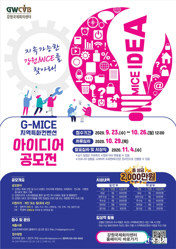 (»ç)°­¿ø±¹Á¦È¸ÀǼ¾ÅÍ, ¡®2020 G-MICE Áö¿ªÆ¯È­ ¾ÆÀ̵ð¾î °ø¸ðÀü¡¯°³ÃÖ...ÃÑ »ó±Ý 2õ¸¸¿ø