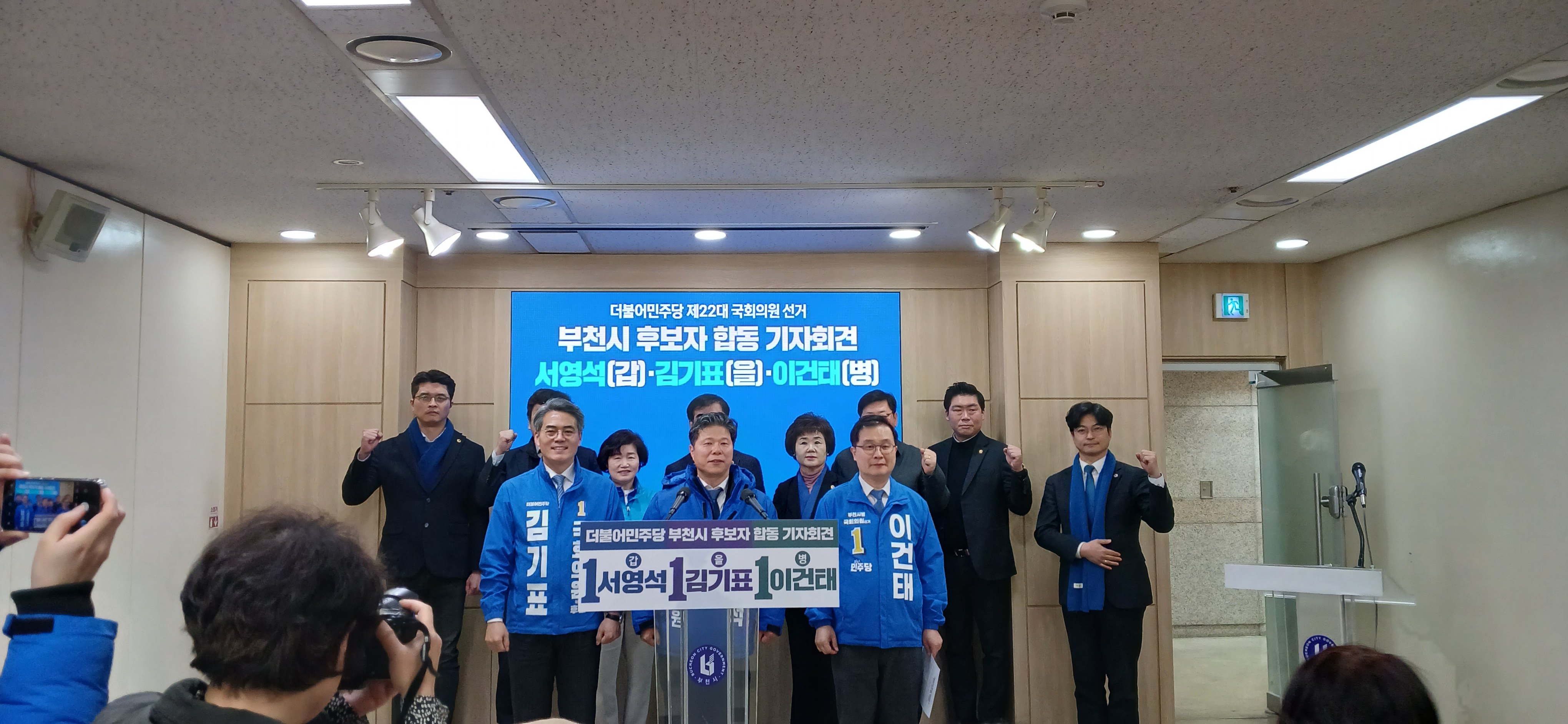 ´õºÒ¾î¹ÎÁÖ´ç ºÎõ½Ã Èĺ¸ÀÚµéÀÌ 22ÀÏ ¿ÀÀü 11½Ã ºÎõ½Ãû ºê¸®Çη뿡¼ ÇÕµ¿±âÀÚȸ°ßÀ» ¿¾ú´Ù. ºÎõ½Ã¿¡ Ã⸶ÇÑ ´õºÒ¾î¹ÎÁÖ´ç ºÎõ½Ã(°©) ¼¿µ¼® Èĺ¸, ºÎõ½Ã(À») ±è±âÇ¥ Èĺ¸, ºÎõ½Ã(º´) À̰ÇÅ È帴 À̳¯ ÇÑ ¸ñ¼Ò¸®·Î Á¤±Ç½ÉÆÇ°ú ¹Î»ýȸº¹À» À§ÇØ ½Ã¹Î°ú ÇÔ²² ÃѼ±¿¡¼ ½Â¸®ÇÏ°í ¿øÆÀÀ¸·Î ºÎõÀÇ Çõ½Å°ú ¹ßÀüÀ» À̲ø°Ú´Ù´Â °¢¿À¸¦ ¹àÇû´Ù.