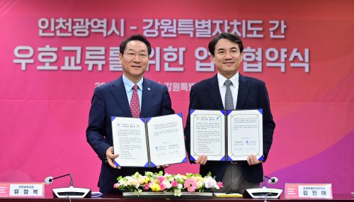 ÀÎõ±¤¿ª½Ã(½ÃÀå À¯Á¤º¹)´Â 3¿ù 13ÀÏ °¿øÆ¯º°ÀÚÄ¡µµÃ»¿¡¼ °¿øÆ¯º°ÀÚÄ¡µµ(µµÁö»ç ±èÁøÅÂ)¿Í ¡®»ó»ý¹ßÀüÀ» À§ÇÑ ¿ìÈ£±³·ù ¾÷¹«Çù¾à¡¯À» ü°áÇß´Ù°í ¹àÇû´Ù.