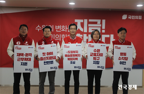 ±¹¹ÎÀÇÈû ±èÇöÁØ(°©), È«À±¿À(À»), ¹æ¹®±Ô(º´), À̼öÁ¤(Á¤), ¹ÚÀç¼ø(¹«) È帴 3¿ù 14ÀÏ °æ±âµµÀÇȸ ÁßȸÀǽÇ1¿¡¼ ¡®¼ö¿øÀ» »õ·Ó°Ô¡¯¶ó´Â ÇÕµ¿°ø¾àÀ» ¹ßÇ¥Çß´Ù. ù ÇÕµ¿°ø¾à ¹ßÇ¥·Î, ¹Ì·¡¼¼´ëÀÎ ¾î¸°À̤ýû¼Ò³â¤ýû³â °ø¾àÀ» ¹ßÇ¥Çß´Ù. 5¸íÀÇ È帵éÀº °¢°¢ ÀÏ‧°¡Á¤, ÀúÃâ»ý, ÀÏ»ó, ±³À°, ȯ°æ µî 5°³ ºÐ¾ß °ø¾àÀ» ¹ßÇ¥ÇÏ°í ¡°¾à¼Ó ½ÇÇöÀ» À§Çؼ ÇÔ²² ³ë·ÂÇÒ °Í¡±À» ´ÙÁüÇß´Ù.