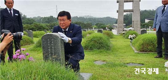 ±¤ÁÖ Ã¹ ÀÏÁ¤À¸·Î ±¹¸³5¡¤18¹ÎÁÖ¹¦Áö¸¦ ãÀº ¼³ÈÆ ÀÇ¿øÀº ¿À¿ù ¿µ·Éµé²² ´ç´ëÇ¥¿¡ Ã⸶¸¦ ÇÑ´Ù´Â °ÍÀ» °íÇÏ¸ç °¢¿À¸¦ ´ÙÁ³´Ù.