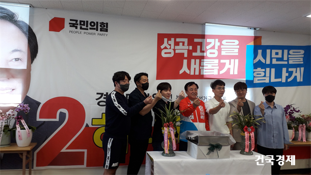 ÇãÅ·¡ ±¹¹ÎÀÇÈû °æ±âµµÀÇ¿ø Èĺ¸(ºÎõ½Ã 7¼±°Å±¸(¼º°îµ¿)°¡ 2022³â 5¿ù 15ÀÏ ºÎõ½Ã À§Ä¡ÇÑ ¼±°Å»ç¹«¼Ò¿¡¼­ °³¼Ò½ÄÀ» ¿­°í "µûµíÇÏ°í ¹ÏÀ½Á÷ÇÑ °æ±âµµ »õÀϲÛ!"À»  ½½·Î°ÇÀ¸·Î  °É°í º»°ÝÀûÀÎ ¹Î½ÉÀÇ Ç¥¹ç °¥ÀÌ¿¡ µ¹ÀÔ Çß´Ù.