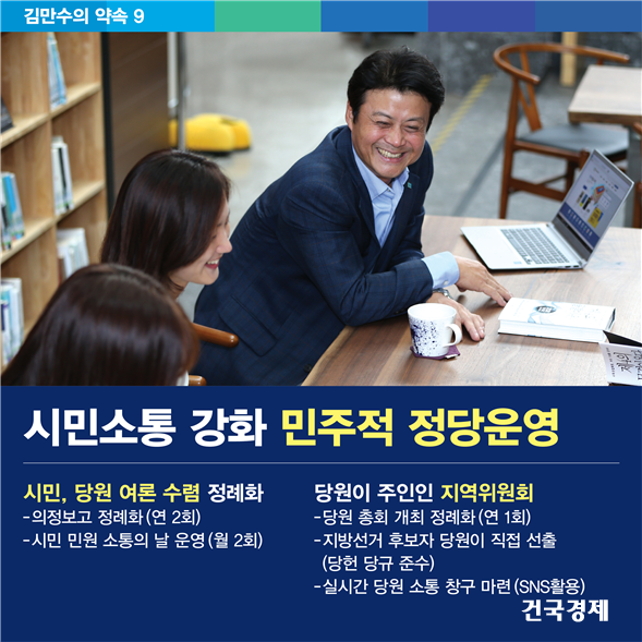 ¶ÇÇÑ, ±è È帴 ´ç¿ø°úÀÇ ¿øÈ°ÇÑ ¼ÒÅëµµ °Á¶Çß´Ù. ´ç¿øÀÌ ÁÖÀÎÀÎ Áö¿ªÀ§¿øÈ¸¸¦ ¸¸µé±â À§ÇØ ´ç¿ø ÃÑȸ °³ÃÖ¸¦ ¿¬ 1ȸ·Î Á¤·ÊÈÇÏ´Â µî ¡®´ç¿ø¼ÒÅ롯À» °ÈÇÑ´Ù. ƯÈ÷, SNS¸¦ Àû±ØÀûÀ¸·Î Ȱ¿ëÇÏ¿© ½Ç½Ã°£À¸·Î ´ç¿ø°ú ¼ÒÅëÇÒ ¼ö ÀÖµµ·Ï ¿Â¶óÀÎ ¼ÒÅë ⱸ¸¦ ¸¶·ÃÇÒ °èȹÀÌ´Ù.
