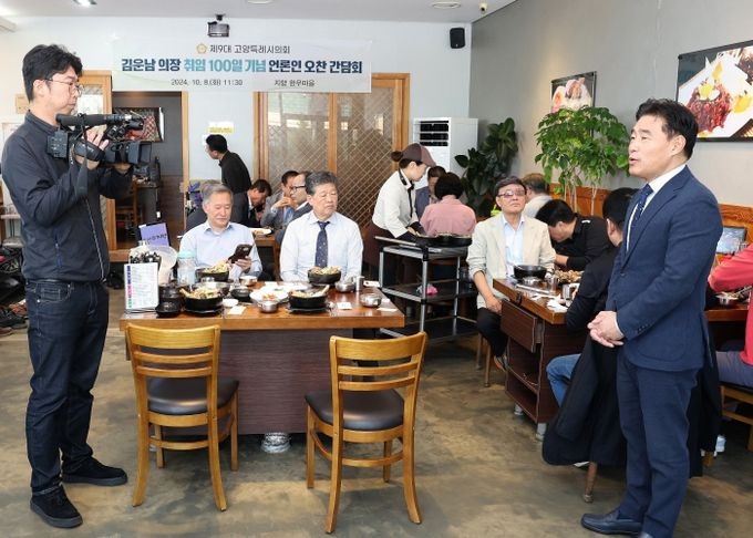 °í¾çƯ·Ê½ÃÀÇȸ ±è¿î³² ÀÇÀåÀº Á¦9´ë ÈĹݱâ ÀÇÀå ÃëÀÓ 100ÀÏÀ» ¸Â¾Æ Áß¾Ó ¹× Áö¹æ ¾ð·ÐÀεé°ú ¿ÀÂù °£´ãȸ¸¦ ÁøÇàÇß´Ù.