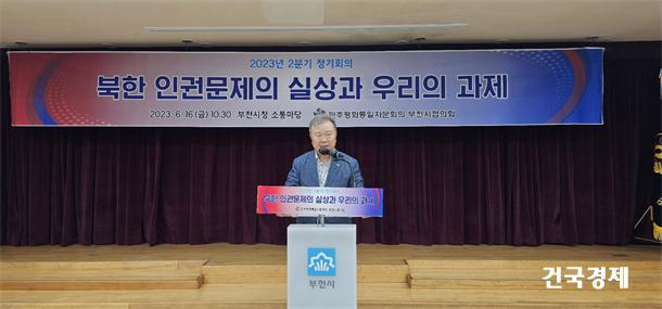 ¹ÎÁÖÆòÈ­ÅëÀÏÀÚ¹®È¸ÀÇ ºÎõ½ÃÇùÀÇȸ(ȸÀå Á¤ÀÎÁ¶) 6¿ù 16ÀÏ, ºÎõ½Ãû ȸÀǽǿ¡¼­ ÀÚ¹®À§¿ø 50¿©¸íÀÌ Âü¼®ÇÑ °¡¿îµ¥ 2023³â 2ºÐ±â Á¤±âȸÀǸ¦ ¡®ºÏÇÑÀαǹ®Á¦ÀÇ ½Ç»ó°ú ¿ì¸®ÀÇ °úÁ¦¡¯¸¦ ÁÖÁ¦·Î °³ÃÖÇß´Ù.