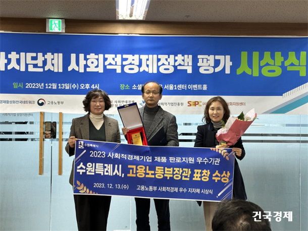 ¼ö¿ø½Ã°¡ ¡®»çȸÀû±â¾÷ Á¦Ç° ÆÇ·ÎÁö¿ø¡¯ ¿ì¼ö±â°üÀ¸·Î ¼±Á¤µÅ °í¿ë³ëµ¿ºÎ Àå°ü»óÀ» ¹Þ¾Ò´Ù. ½Ã»ó½ÄÀº 2023³â 12¿ù 13ÀÏ ¼Ò¼ÈÄ·ÆÛ½º ¿Â ¼¿ï1¼¾ÅÍ¿¡¼ ¿·È´Ù.