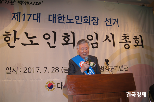 2017³â 7¿ù 28ÀÏ ¿ÀÀü 11½Ã (»ç)´ëÇѳëÀÎȸ Á¦17´ë ȸÀå ¼±°Å°¡ ¼­¿ï½Ã ¼ÒÀç ¹é¹ü ±è±¸ ±â³ä°ü ÄÁº¥¼ÇȦ¿¡¼­ ¼±°ÅÀ뫆 284¸í(Àü±¹ ½Ãµµ¿¬ÇÕȸÀå, °¢ ½Ã±ºÁöȸÀå, ÇØ¿Ü ´ëÀÇ¿ø, Áß¾Óȸ ´ëÀÇ¿ø) Áß 272¸íÀÌ ÅõÇ¥¿¡ Âü¿© ÇÏ¿© ³ôÀº °ü½ÉÀ» º¸ÀÎ °¡¿îµ¥ Ä¡·¯Áø ¼±°Å¿¡¼­  ±âÈ£2¹ø ÀÌÁß±Ù(1941³â»ý, Àü³² ¼øÃµ) È帰¡ 114Ç¥¸¦ ¾ò¾î 93Ç¥¸¦ ¾òÀº ±âÈ£ 3¹ø ±èÈ£ÀÏ Èĺ¸¿Í 65Ç¥¸¦ ¾òÀº ±âÈ£ 1¹ø ³²»óÇØ È常¦ ´©¸£°í Á¦17´ë ´ëÇѳëÀÎȸÀå¿¡ ´ç¼±µÆ´Ù.