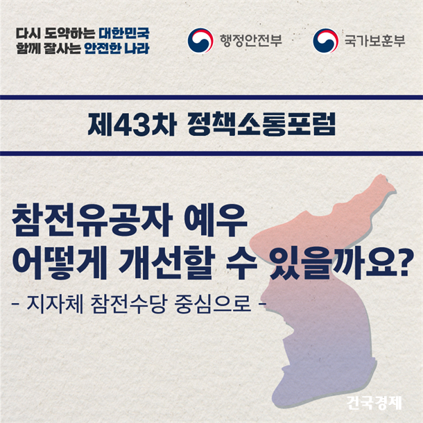 ±¹°¡º¸ÈƺÎ(Àå°ü ¹Ú¹Î½Ä)´Â ÇàÁ¤¾ÈÀüºÎ(Àå°ü ÀÌ»ó¹Î)¿Í¡°ÂüÀüÀ¯°øÀÚ ¿¹¿ì ¾î¶»°Ô °³¼±ÇÒ ¼ö ÀÖÀ»±î¿ä?(ÁöÀÚü ÂüÀü¼ö´ç Áß½ÉÀ¸·Î)¡±¶ó´Â ÁÖÁ¦·Î 9¿ù 7ÀÏ(¸ñ) ¿ÀÈÄ 2½Ã, ¼¿ï Á¤Ã¥¼ÒÅëÆ÷·³ °ø°£(¼¿ï ¿Ü±³ºÎ û»ç 1Ãþ)*¿¡¼¡®Á¦43Â÷ Á¤Ã¥¼ÒÅëÆ÷·³¡¯À» °øµ¿ °³ÃÖÇÑ´Ù°í ¹àÇû´Ù