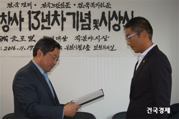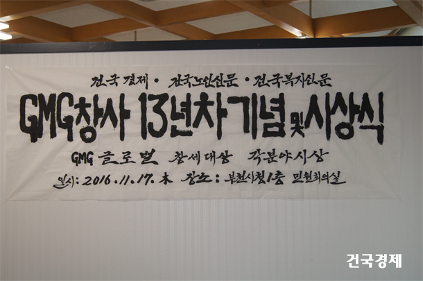 2016³â 11¿ù 17ÀÏ(¸ñ¿ÀÈÄ 2½Ã ºÎõ½Ãû 1Ãþ ¹Î¿øÈ¸Àǽǿ¡¼­ GMG °Ô³Ê½Ã½º¹Ìµð¾î±×·ì(Genesis Midia Group)ÀÇ º¸¶÷°ú Áñ°Å¿òÀ» ÇÔ²² ³ª´©°íÀÚ GMG(°Ç±¹°æÁ¦. °Ç±¹³ëÀνŹ®. °Ç±¹º¹Áö½Å¹®) â»ç 13³âÂ÷¸¦ ±â³äÇÏ¿© GMG ±Û·Î¹ú â¼¼´ë»ó ½Ã»ó½ÄÀÌ ¼ö»óÀÚ ¹× ½É»ç.¿î¿µÀ§¿ø µîÀÌ Âü¼®ÇÑ °¡¿îµ¥ °£¼ÒÇÏ°Ô ¿­·È´Ù.