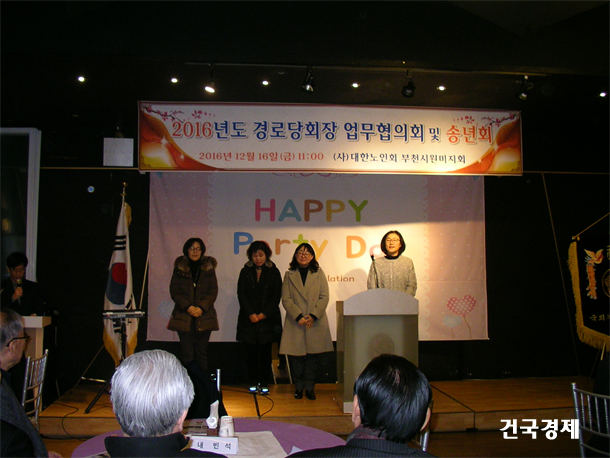 2016³â ´ëÇѳëÀÎȸ ºÎõ¿ø¹ÌÁöȸ(°í½Â¾ð ȸÀå) °æ·Î´ç ȸÀå ¾÷¹«ÇùÀÇȸ ¹× ¼Û³âȸ°¡ 2016³â 12¿ù 16ÀÏ(±Ý) ¿ÀÀü 11½Ã ºÎõ °ü³» µð¾Æ¸ù¿þµùȦ¿¡¼­ ¸¹Àº Áöȸ °æ·Î´ç ȸÀå µîÀÌ Âü¼®ÇÑ °¡¿îµ¥ ½ÅÀ籸 »ç¹«±¹ÀåÀÇ »çȸ·Î ¿­·È´Ù. À̳¯ ´ëÇѳëÀÎȸ ºÎõ¿ø¹ÌÁöȸ °í½Â¾ð ȸÀåÀÇ Àλ縻¿¡ ÀÌ¾î ºÎõ½ÃÀÇȸ ¹Î¸ÍÈ£ ºÎÀÇÀåÀÇ Ãà»ç ¹× ÀÚÃ࿬ µîÀÌ ÀÖ¾ú´Ù.