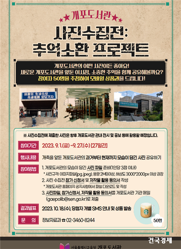 ƯÈ÷, °³Æ÷µµ¼°ü ¡®»çÁø¼öÁýÀü - Ãß¾ï¼Òȯ ÇÁ·ÎÁ§Æ®¡¯´Â ¼¿ïƯº°½Ã±³À°Ã» »êÇÏ µµ¼°ü‧Æò»ýÇнÀ°ü Áß Ã¹ °³ÃàÀ» ¾ÕµÐ °³Æ÷µµ¼°ü¿¡¼ 1984³â °³°üºÎÅÍ 2023³â ÇöÀç±îÁö µµ¼°ü °ü·Ã Ãß¾ïÀÌ ´ã±ä »çÁøÀ» ¼öÁýÇϰí Áö¿ªÁֹεé°ú °øÀ¯ÇÏ´Â ¶æ±íÀº Çà»ç´Ù.