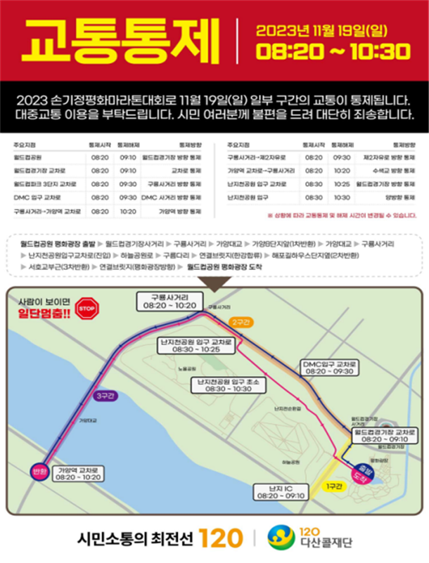´ëȸ°¡ ÁøÇàµÇ´Â 11¿ù 19ÀÏ(ÀÏ) ¿ÀÀü 8½Ã 20ºÐºÎÅÍ ¿ÀÀü 10½Ã 30ºÐ±îÁö, ¿ùµåÄŰæ±âÀå »ç°Å¸®¿¡¼ ±¸·æ»ç°Å¸®, °¡¾ç´ë±³¸¦ °ÅÃÄ °¡¾ç¿ª »ç°Å¸®¿¡ À̸£´Â ¸¶¶óÅæ ÁÖ¿ä ±¸°£ÀÇ ´Ü°èº° ±³ÅëÅëÁ¦°¡ ÀÌ·ç¾îÁø´Ù.